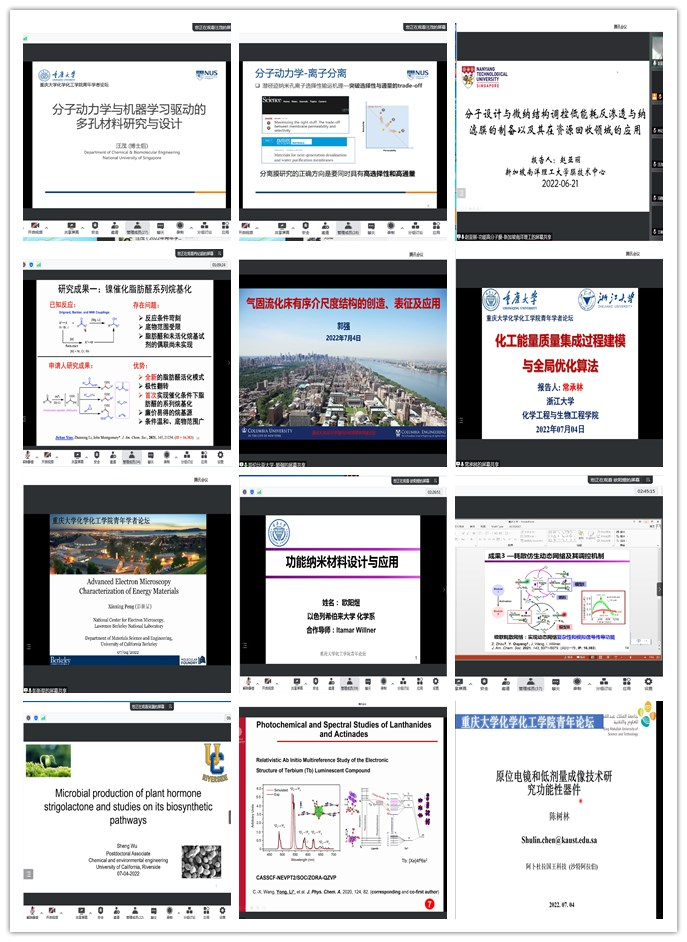 随后,14位优秀青年学者围绕分子动力学、机器学习、催化机理、流化床特种应用、化工全局优化、可再生能源、合成生物学、高精度原位表征等前沿科学领域做了精彩的报告分享,与参会人员进行了深入的学术探讨。