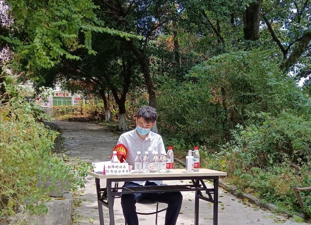 “总有我能做的”,公司上学期末刚刚引进的青年教师张骞老师在收到志愿者招募的信息后加入了志愿者队伍,冒着40几度的高温,顶着烈日,负责对新华村社区的值守,出入登记管理,物资发放,出入政策解释,服务居民之类的工作。半天下来,皮肤已经晒得发红,衣服也已经湿透。