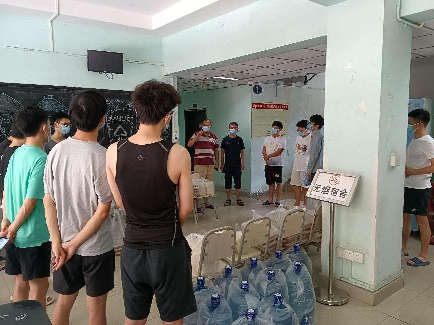 8月21日,由党委副书记李泽全、副经理胡宝山、实验教学示范中心副主任杨文静组成的第一批疫情防控志愿者,来不及安排好家中的老小,来不及补充处于中风险地区的家中补给,毅然决然的第一时间深入隔离管控区,李泽全副书记和胡宝山副经理入住B区十舍,与留校隔离员工同吃同住。全力投身到解决员工生活问题、组织全员核酸检测、落实物资运送、疫情风险排查、值班值守等应急防疫工作中。
