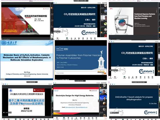 11位优秀青年学者围绕高性能锂离子电池、核酸纳米技术、生物催化、光催化、二氧化碳催化转化、功能高分子材料、多尺度理论模拟、有机氟化学等前沿学科领域作了精彩的报告分享,与参会人员进行了深入的学术探讨。